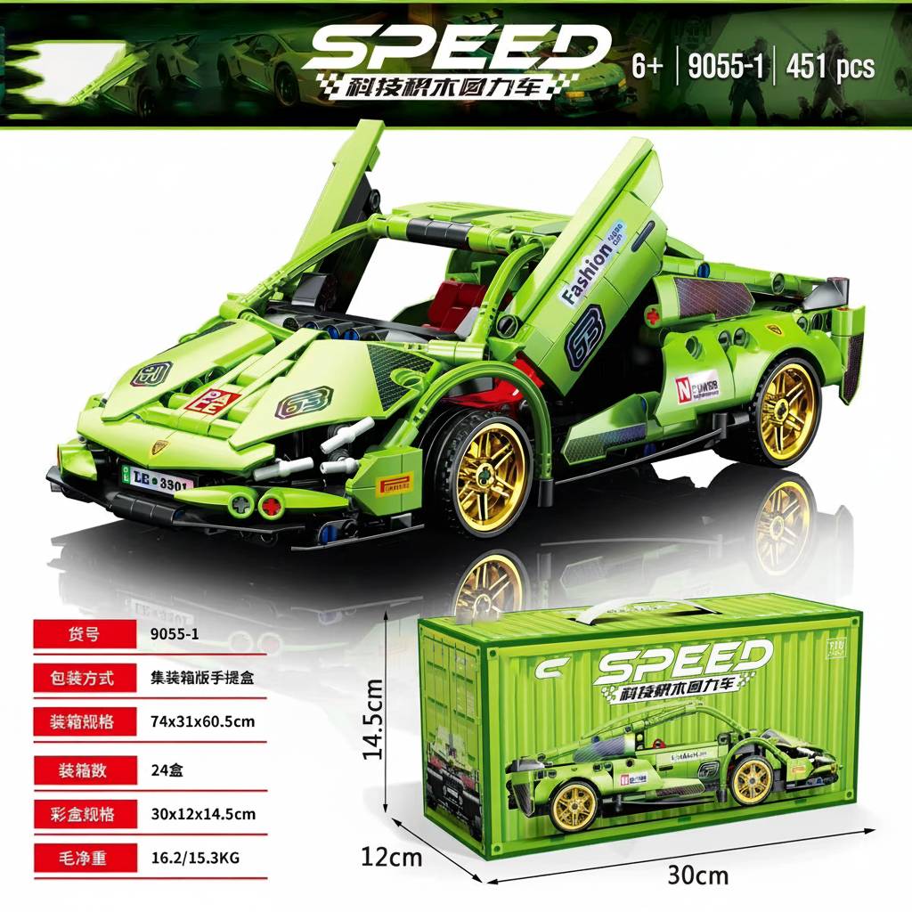 Speed green Building Blocks pull back car 1:18 451 PCS – 9055-1