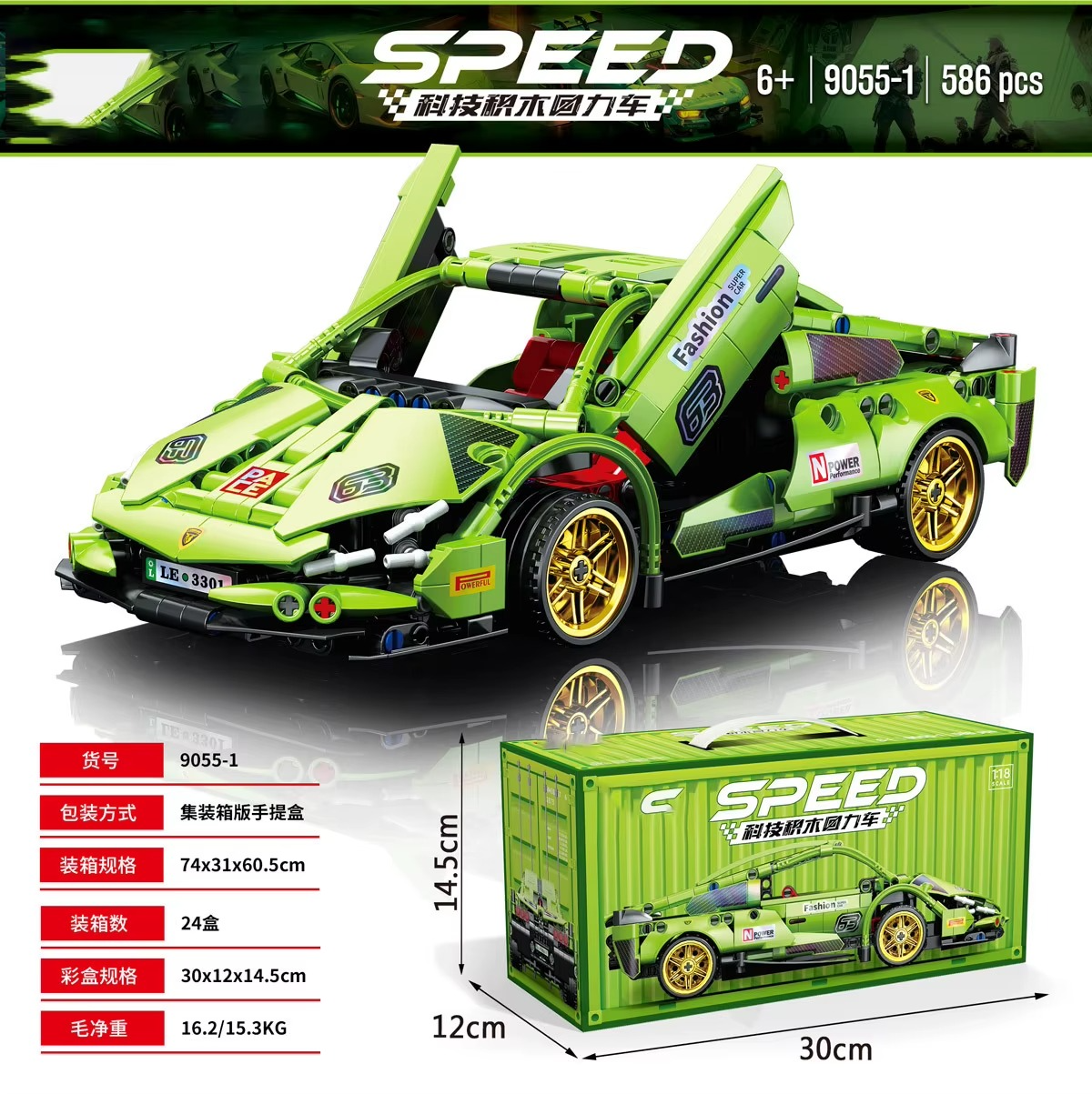Speed green Building Blocks pull back car 1:18 586 PCS – 9055-1