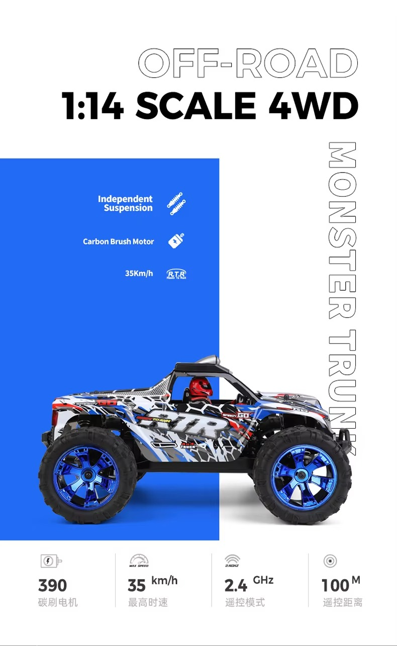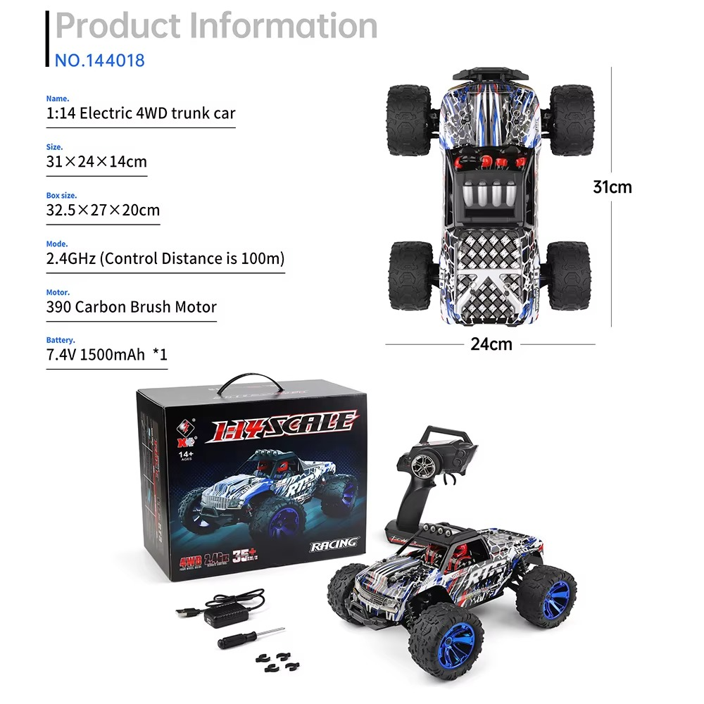 • Scale: 1:14 off-road truggy