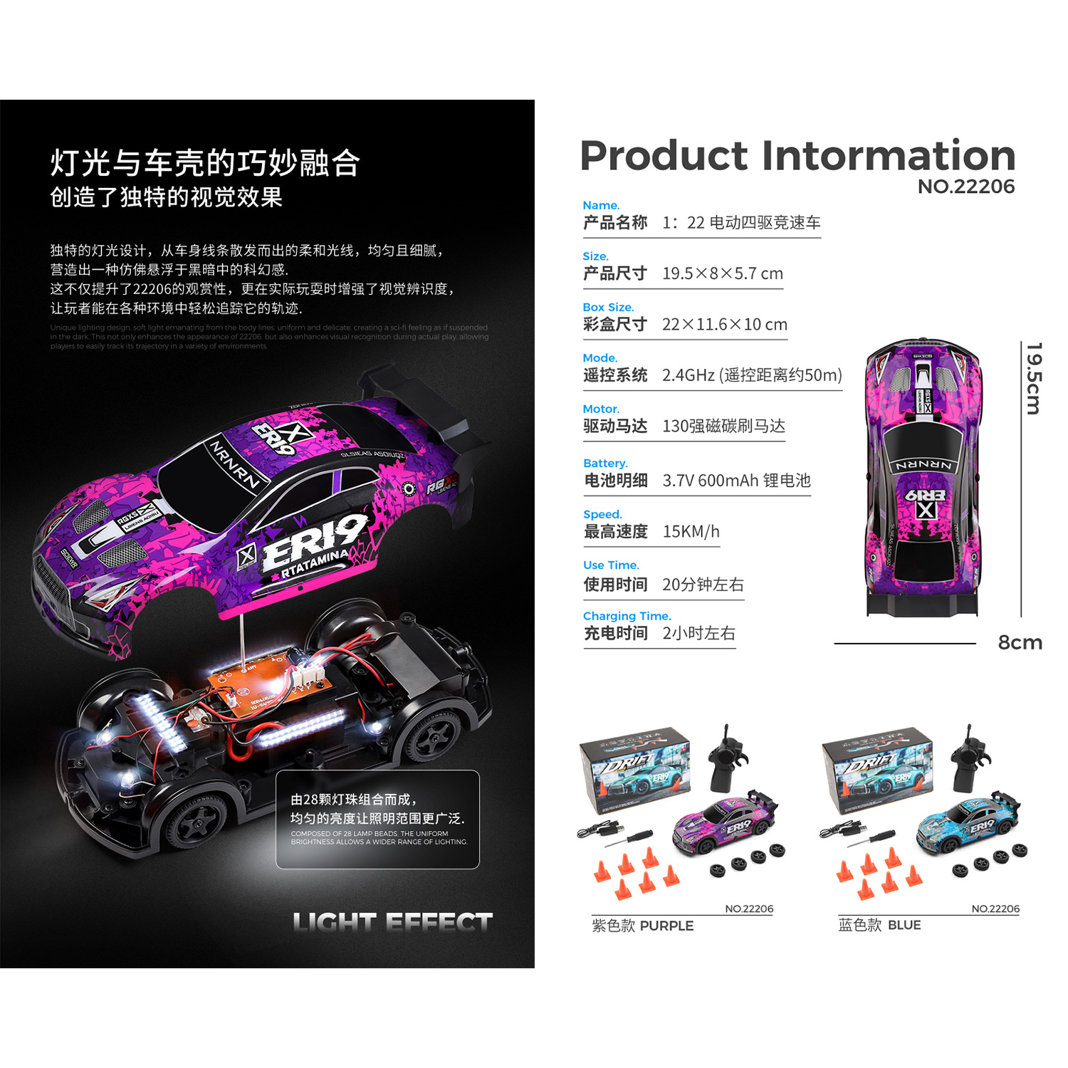 Built with a durable PVC shell and rechargeable Li-ion battery, the WLtoys 22206 is ready-to-run (RTR) straight from the box — including controller, battery, and USB charger for convenient play. :contentReference[oaicite:4]{index=4}